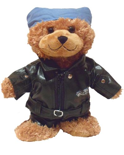 Leather look jacket, trousers and bandana, Jofli is ‘King of the Road’. A great look for a biker dude! (may be slight variations in detail)